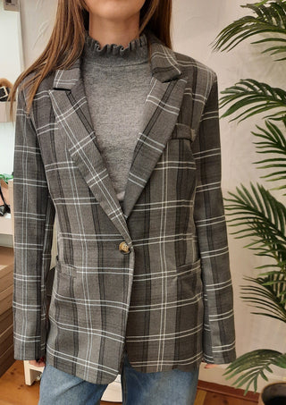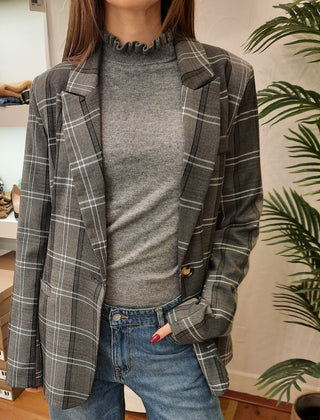 Blazer oversized fantasia check Vicolo con pizzo manica col. Nero
