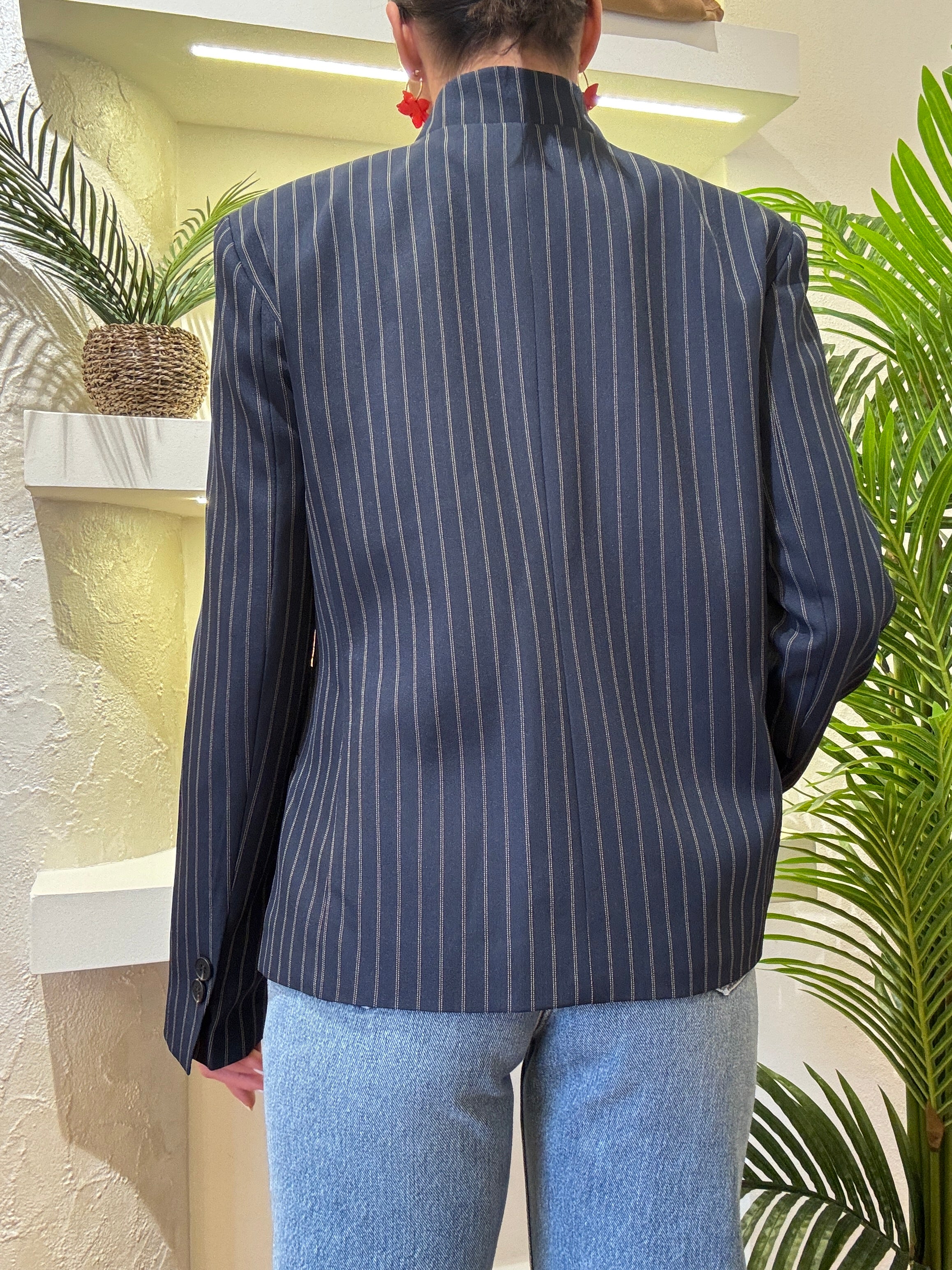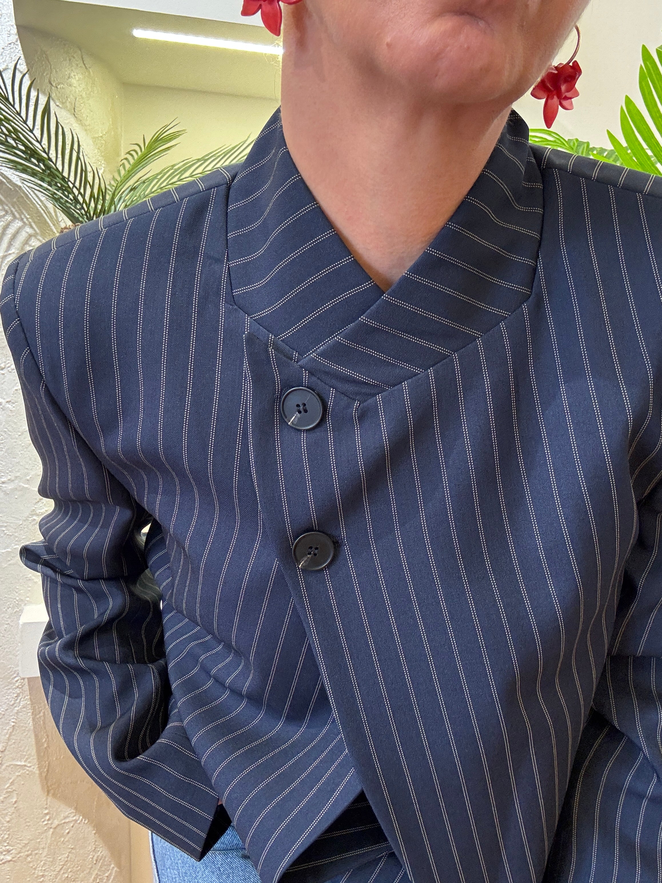 Giacca Haveone  gessato colore blu allacciatura due bottoni coreana.