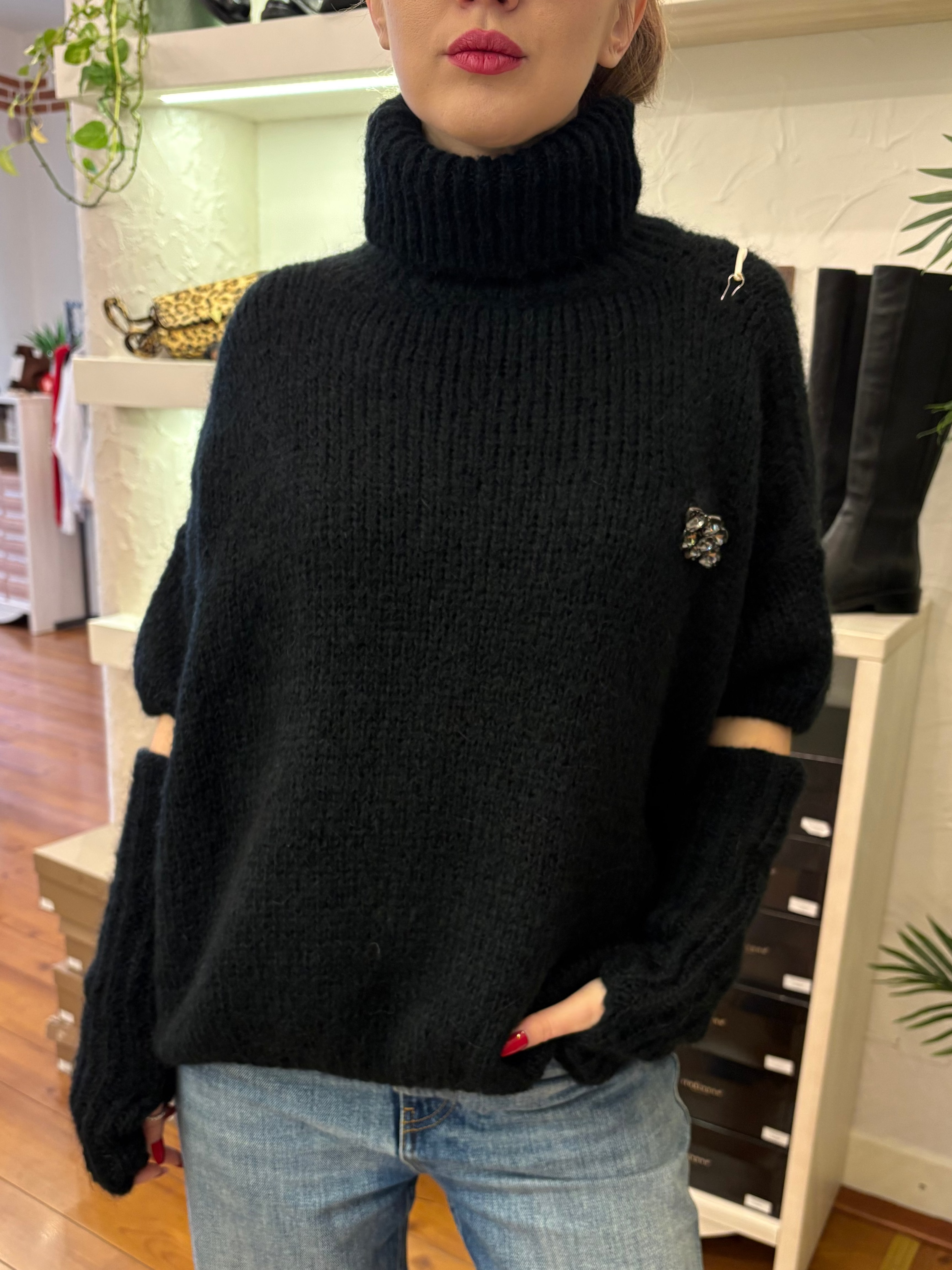 Dolcevita manica corta con manicotti e spilla removibile