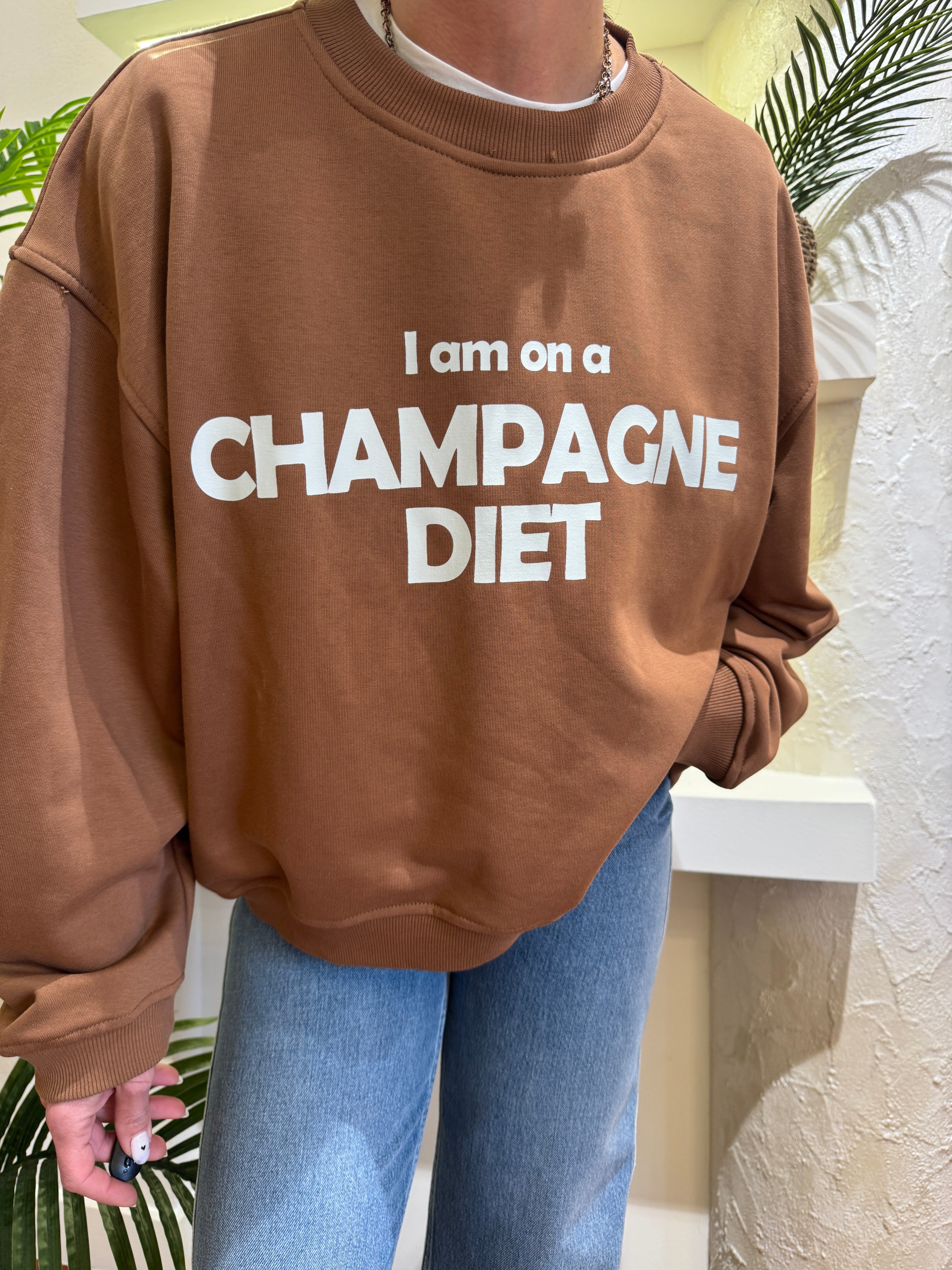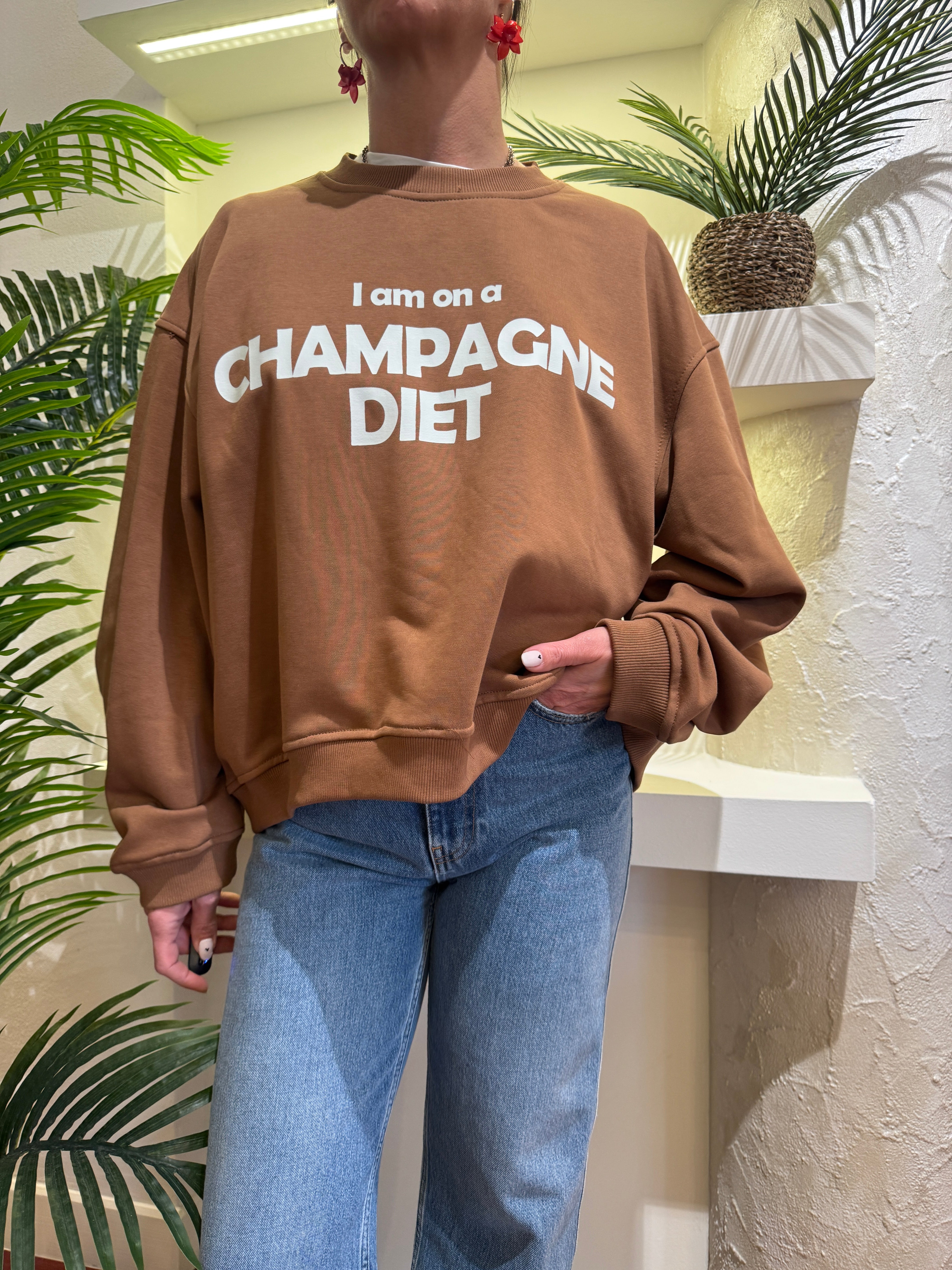 Felpa Vicolo "I am on a Champagne diet" col. Tabacco