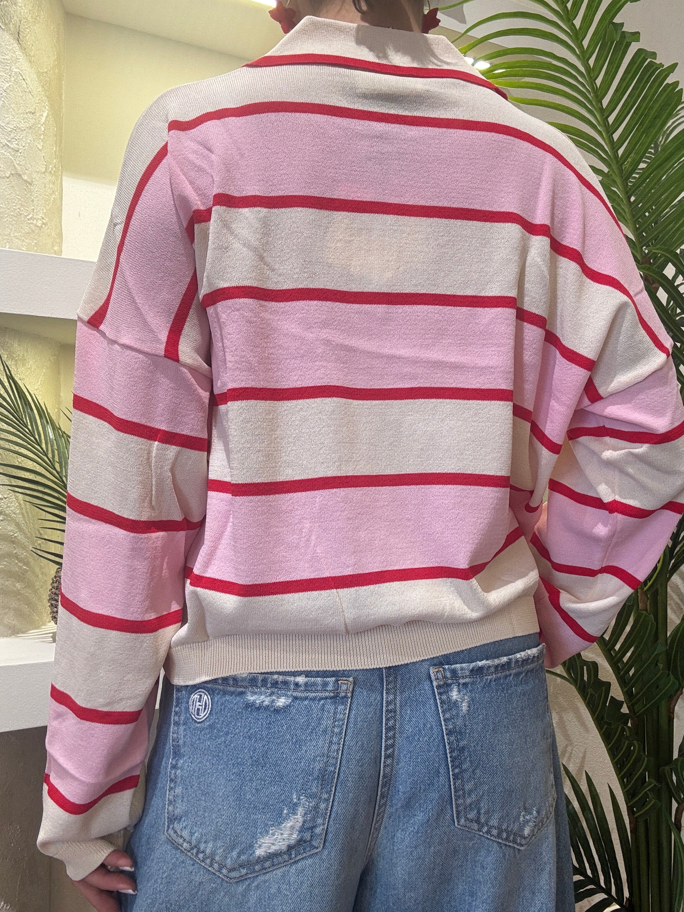 Polo Vicol9 righe panna/rosso/rosa vestibilità morbida.