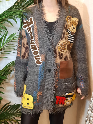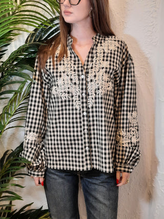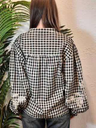 Blazer oversized fantasia check Vicolo con pizzo manica col. Nero