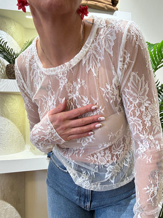 Top Vicolo manica lunga pizzo trasparente col. Burro