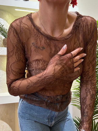 Top Vicolo manica lunga pizzo trasparente col. Marrone
