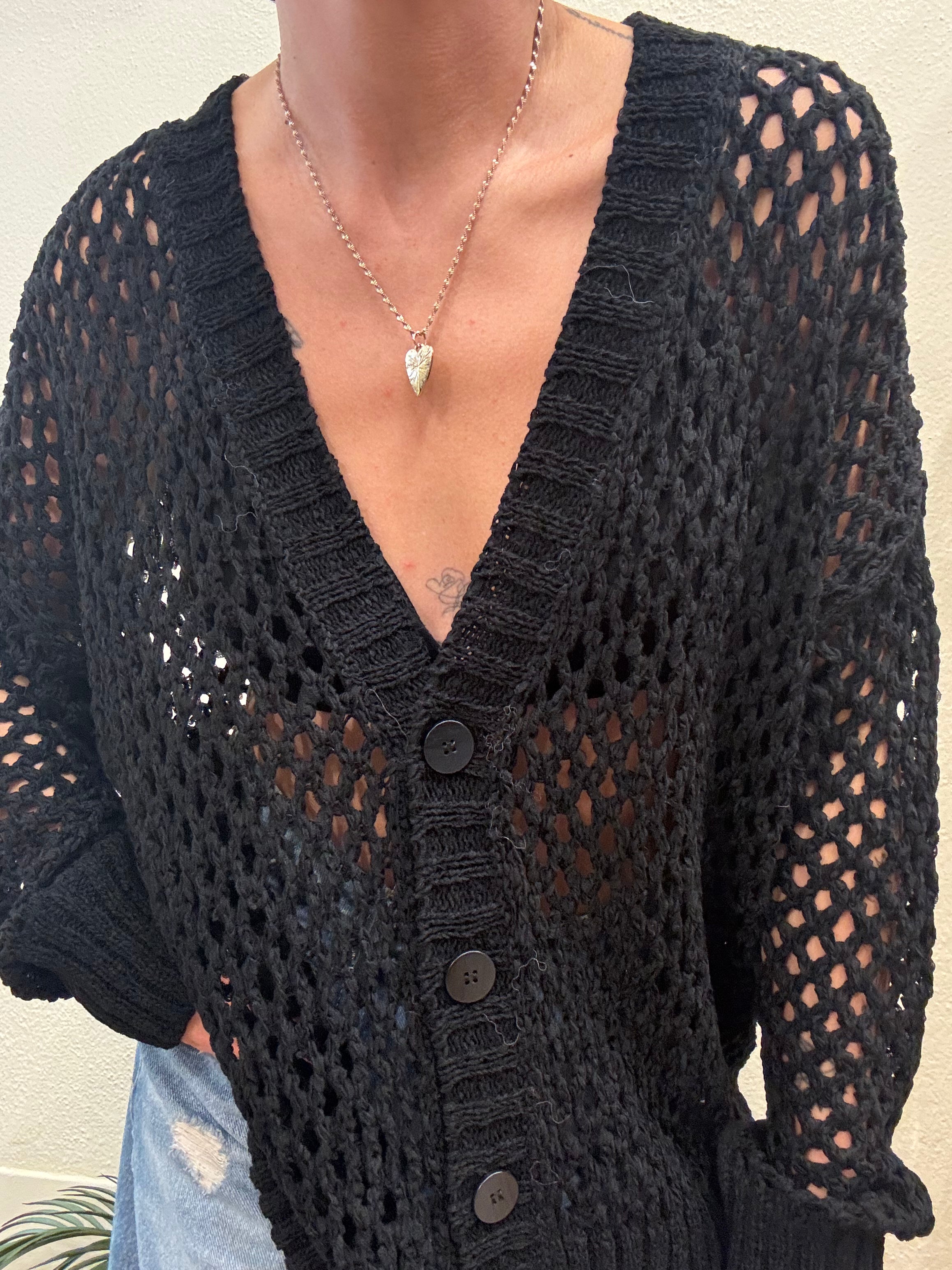 Cardigan traforato col. nero, vestibilitá ampia con chiusura bottoni