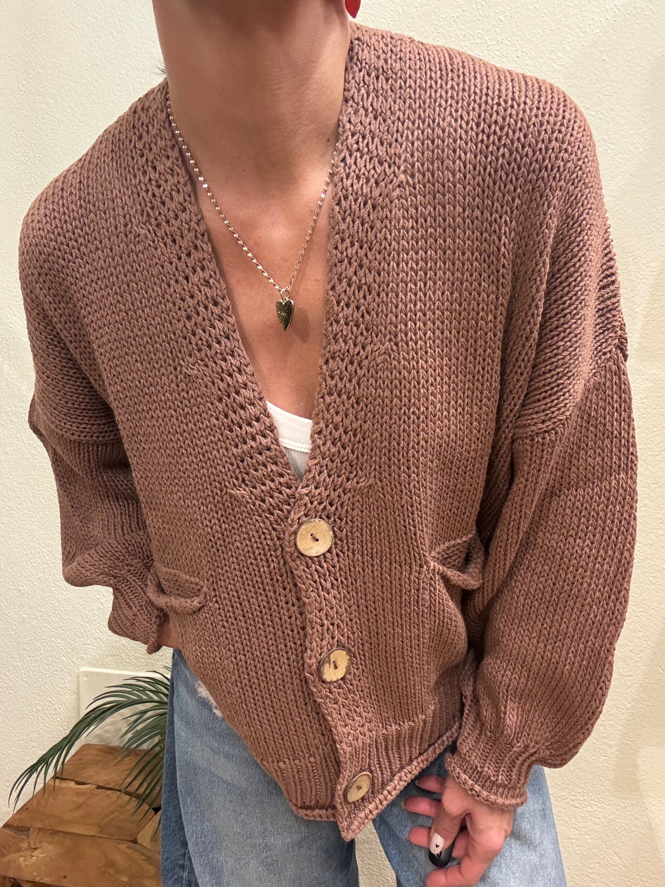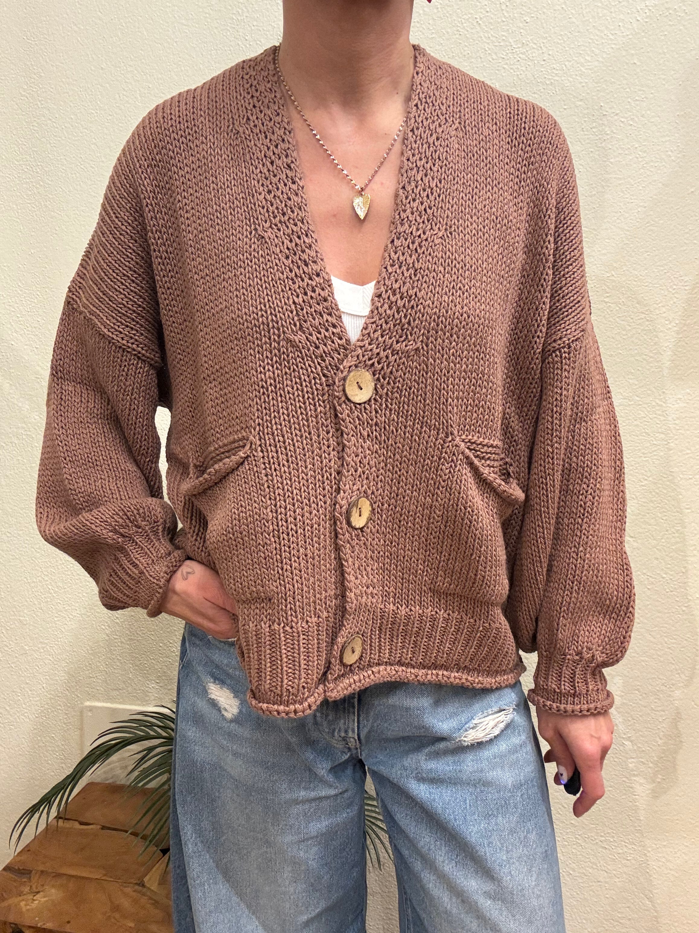 Cardigan Haveone basico con bottoni legno e taschine vestibilita' over.