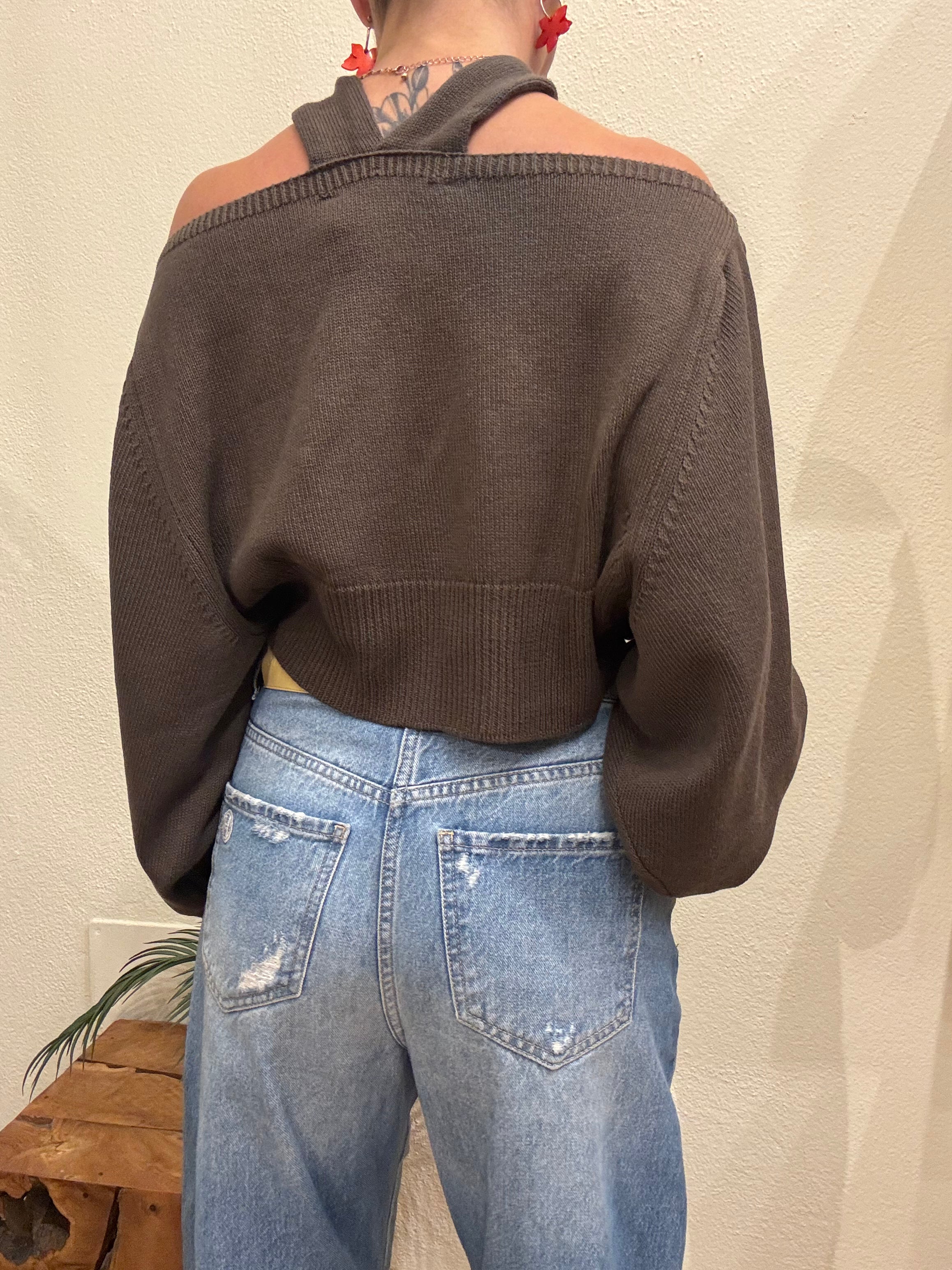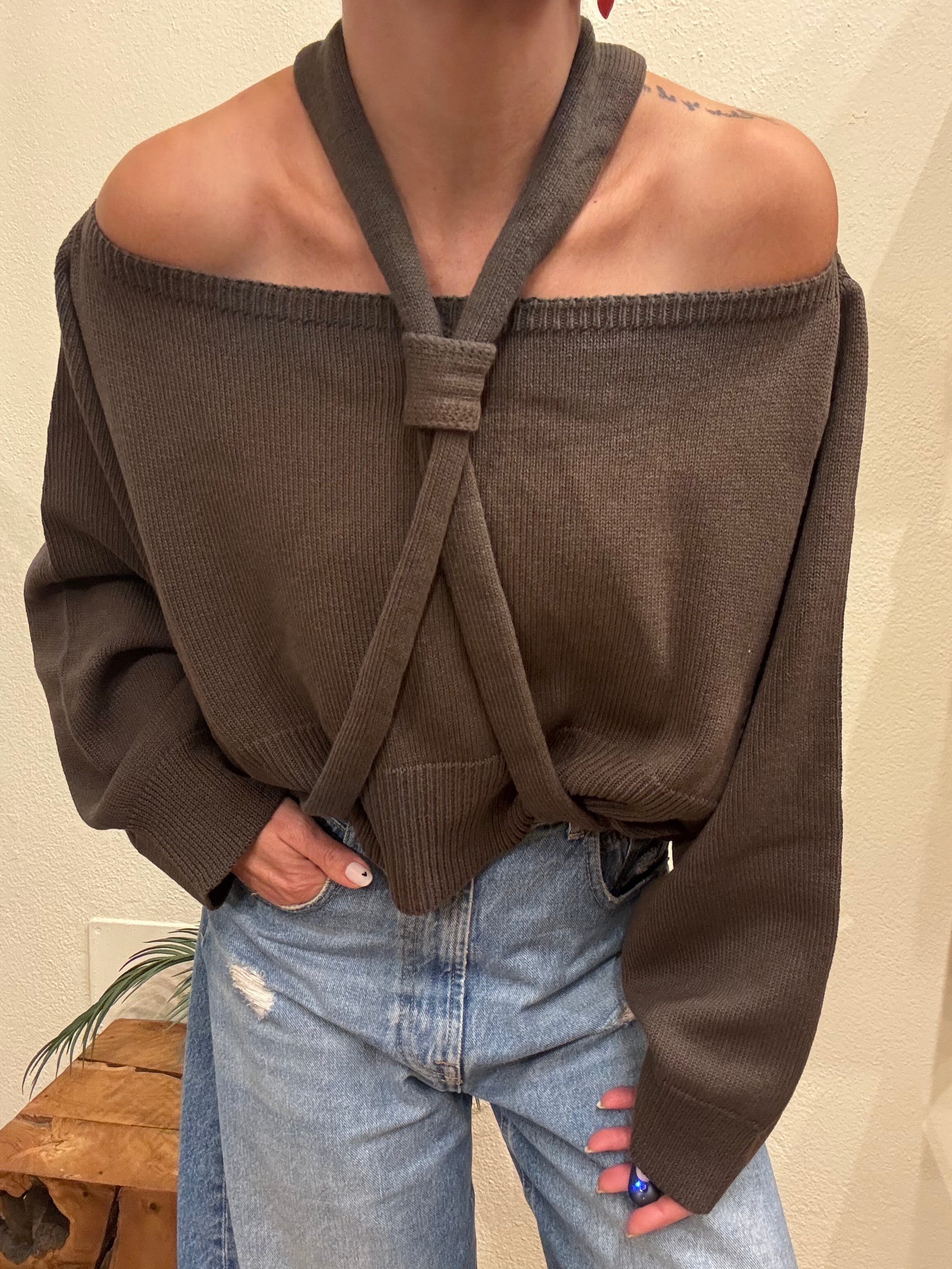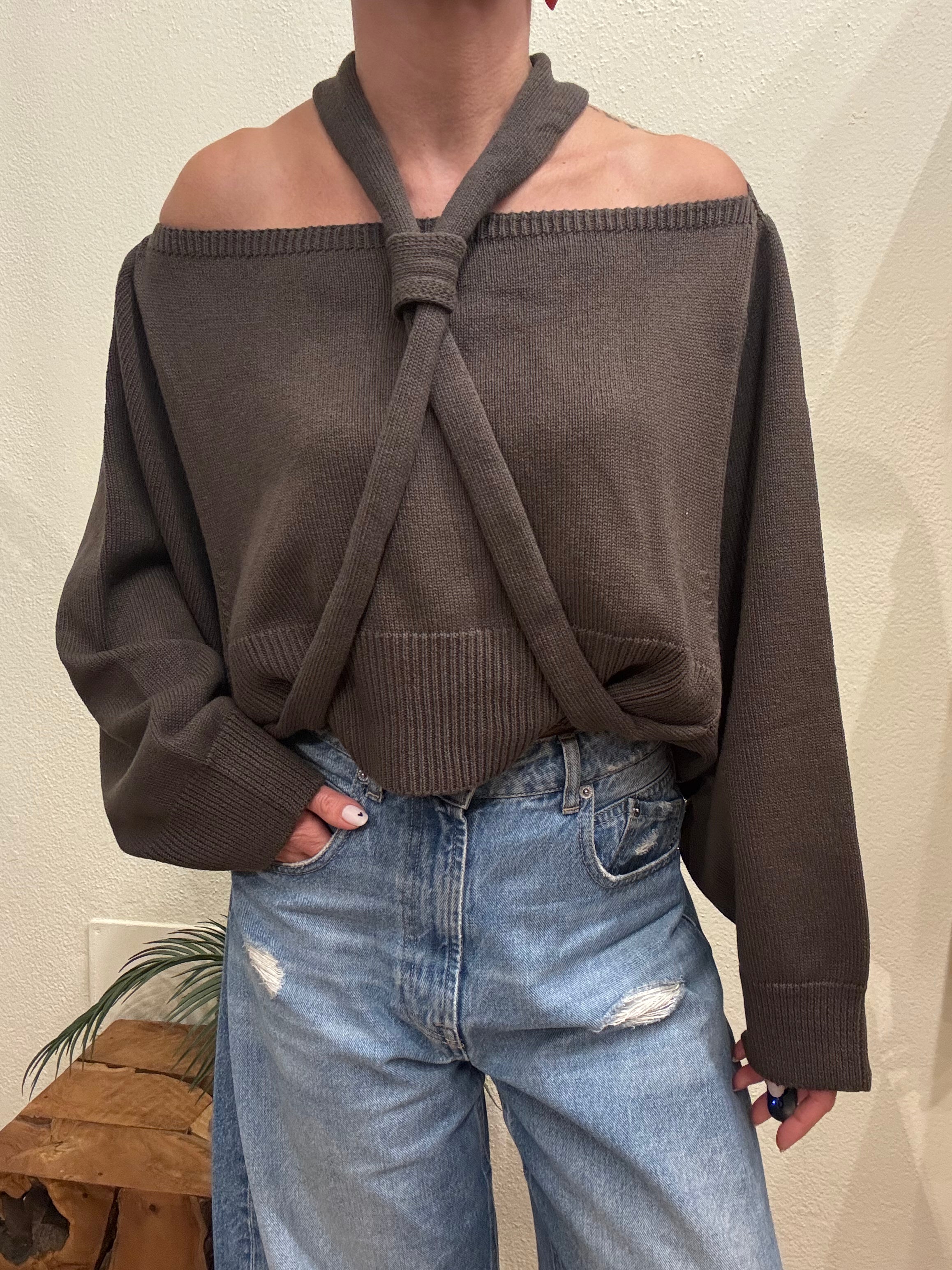 Maglia Haveone scollo barca largo con nodo al collo  vestibilita' ampia corta in vita.