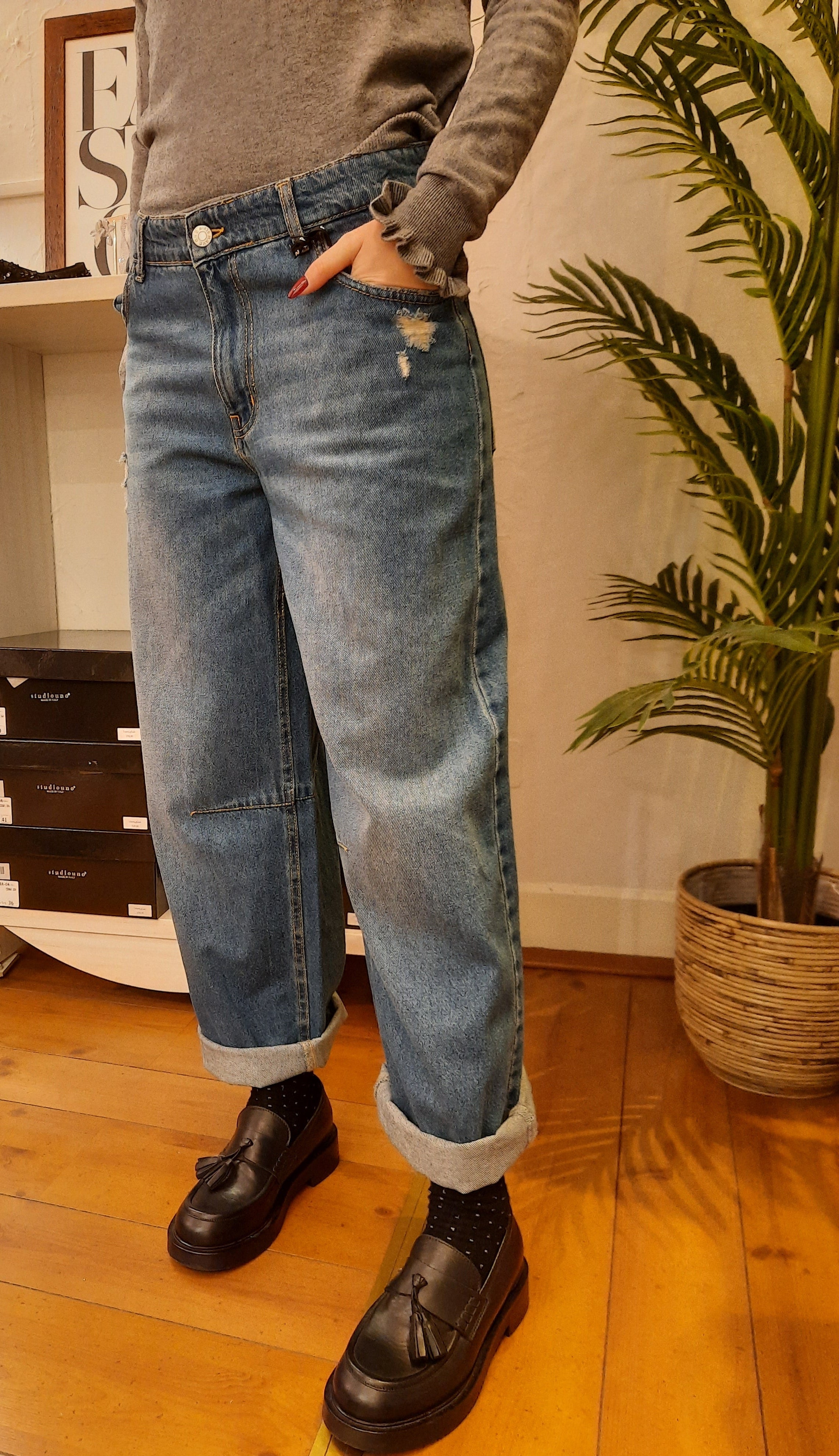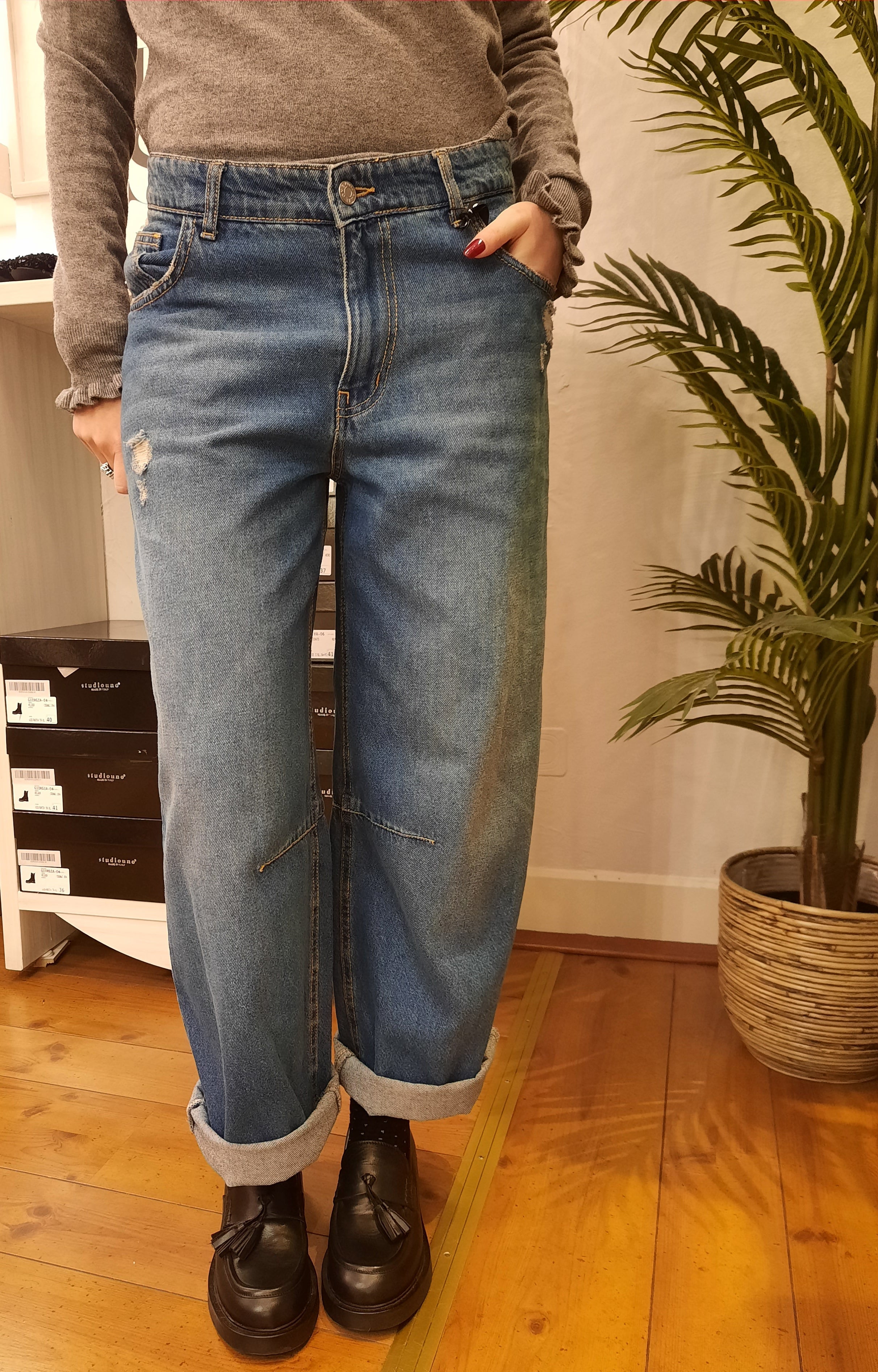 Jeans vita alta, vestibilitá baloon, con pinces ginocchio