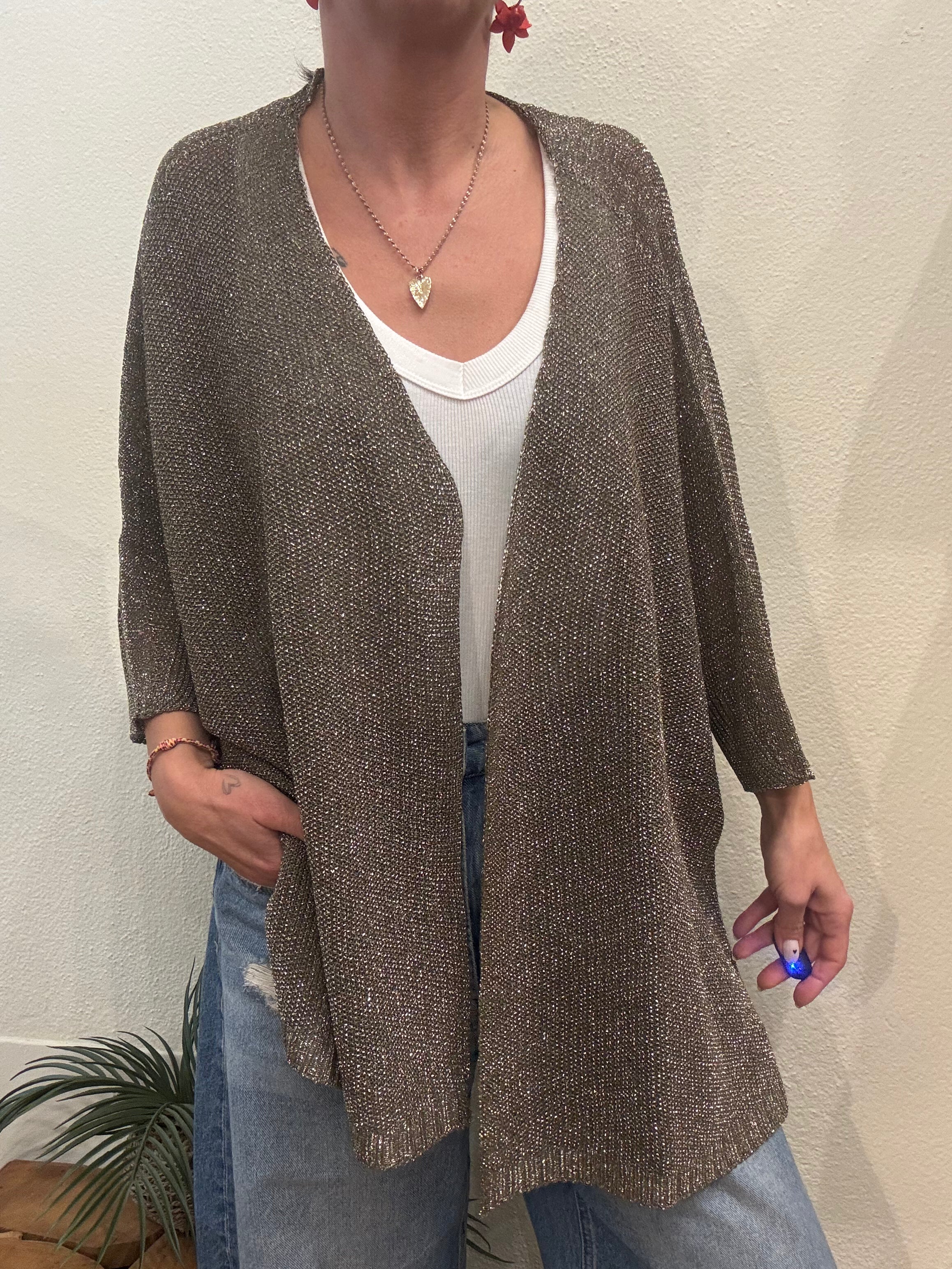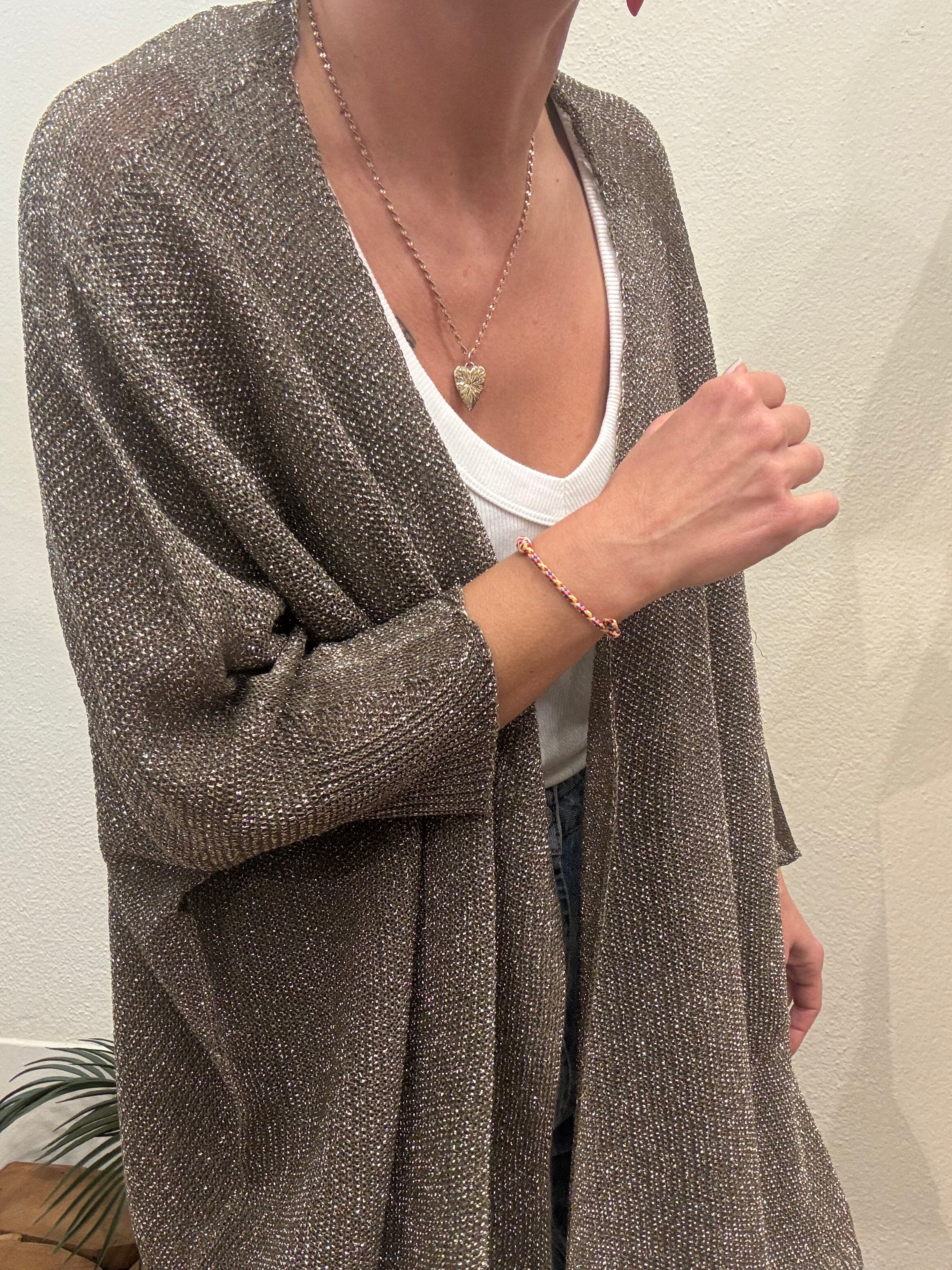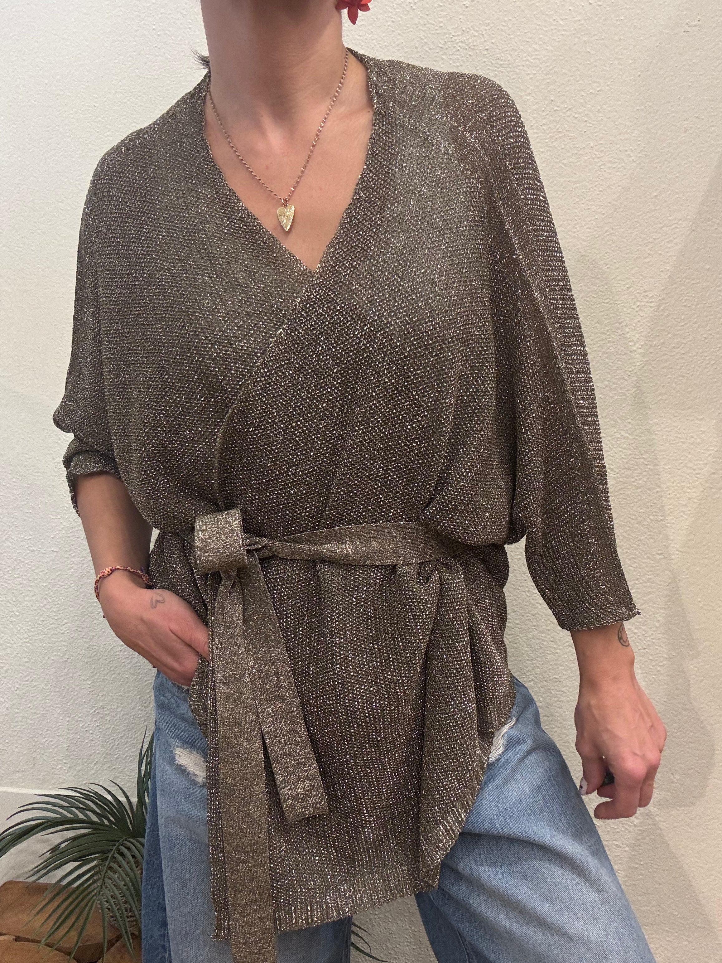 Kimono Kontatto con cintura lurex vestibilita' ampia colore verde militare.