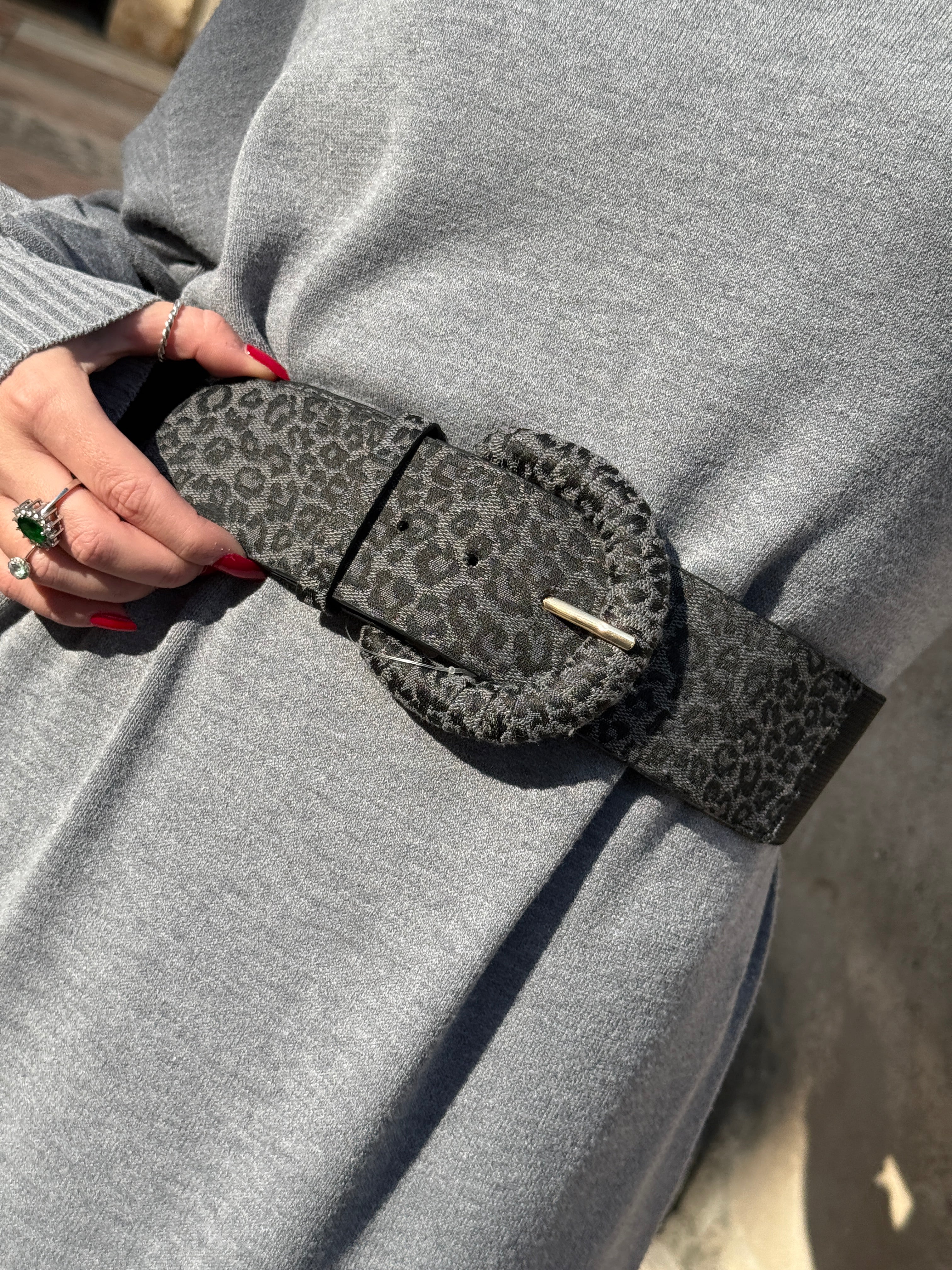 Cintura fantasia leopardata, con elastico sul retro, col. Grigio