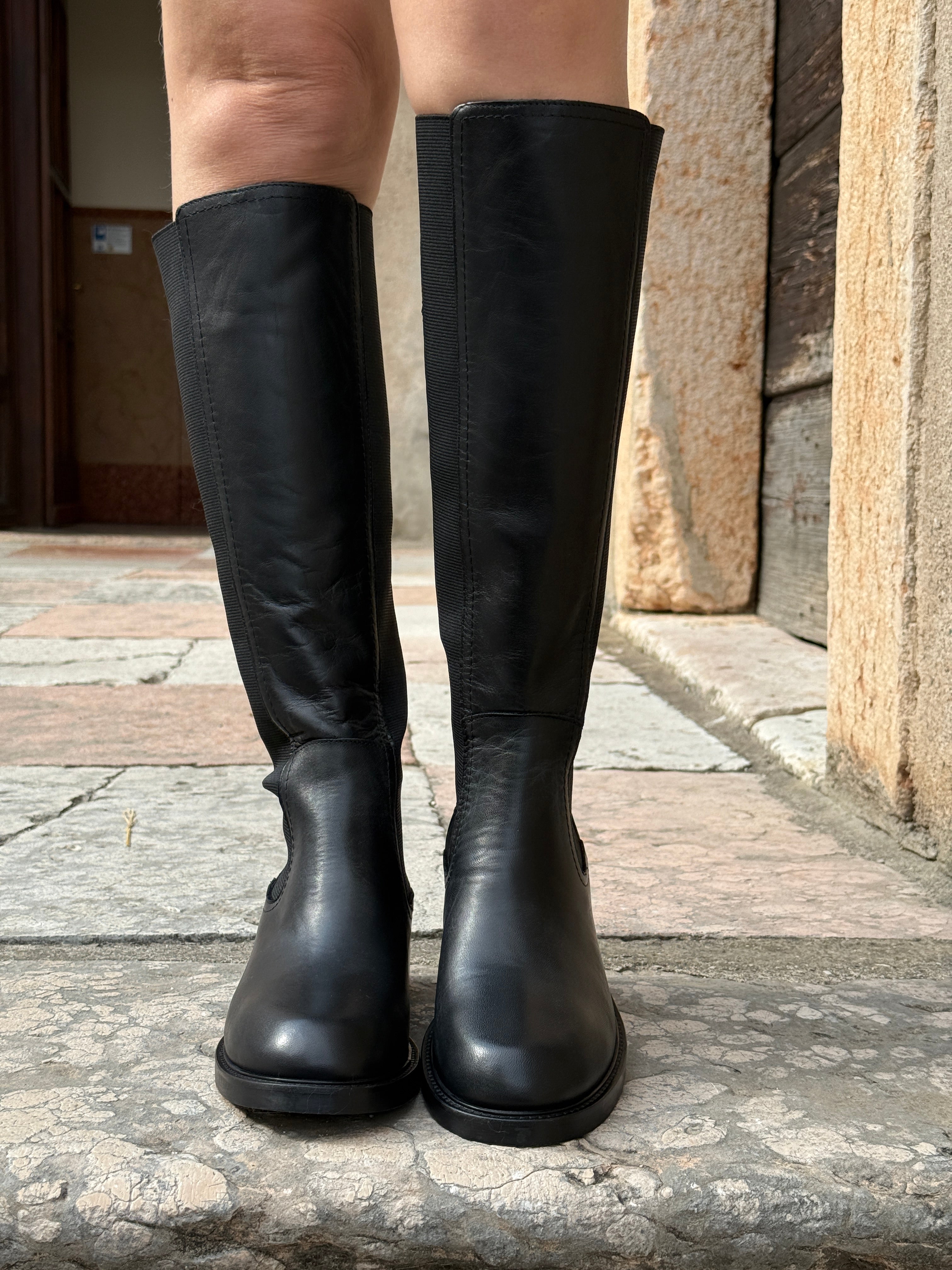 Stivale fabbricato in Italia, vera pelle vitello nero, fodera vera pelle. Con elastico laterale.