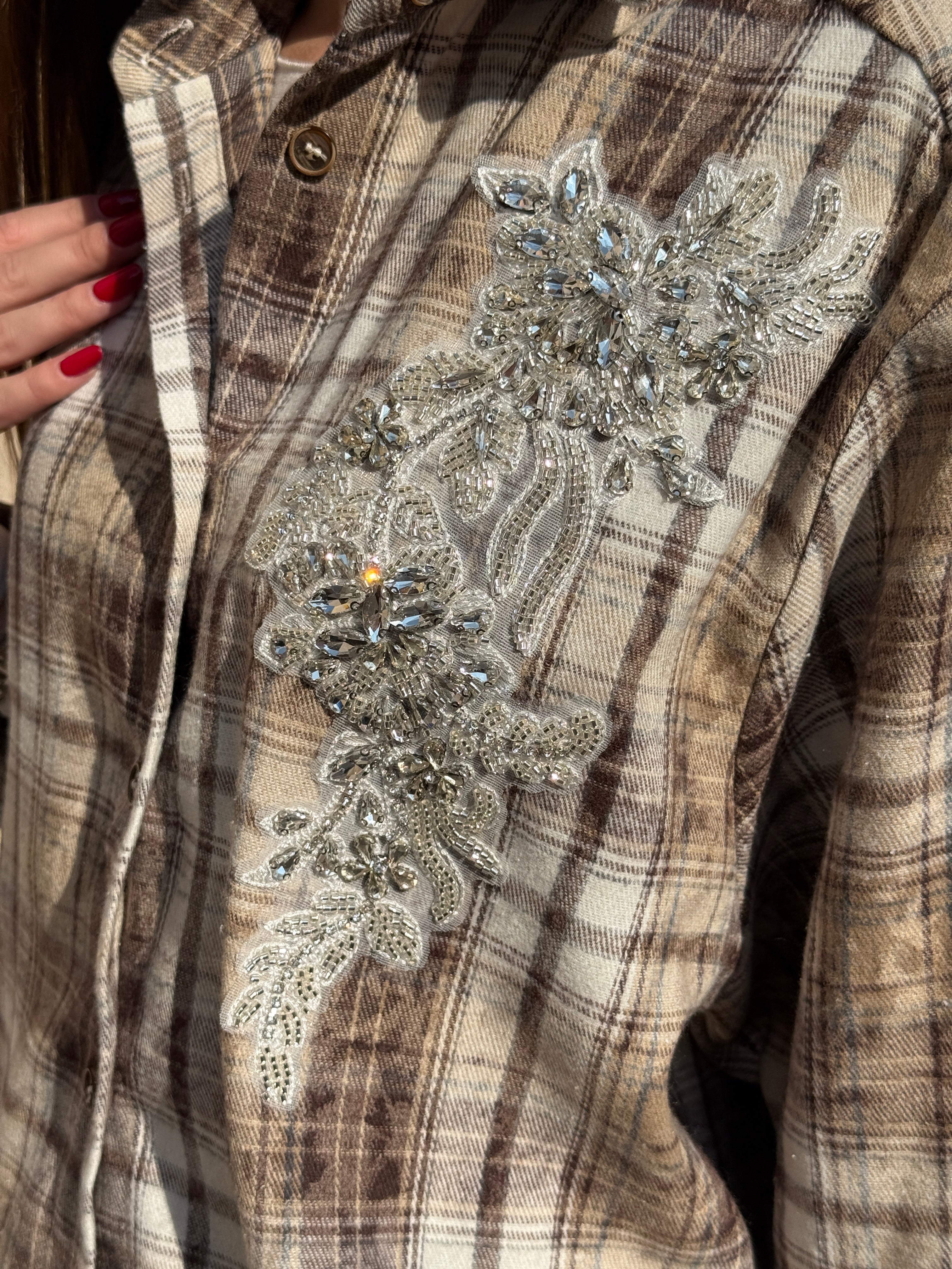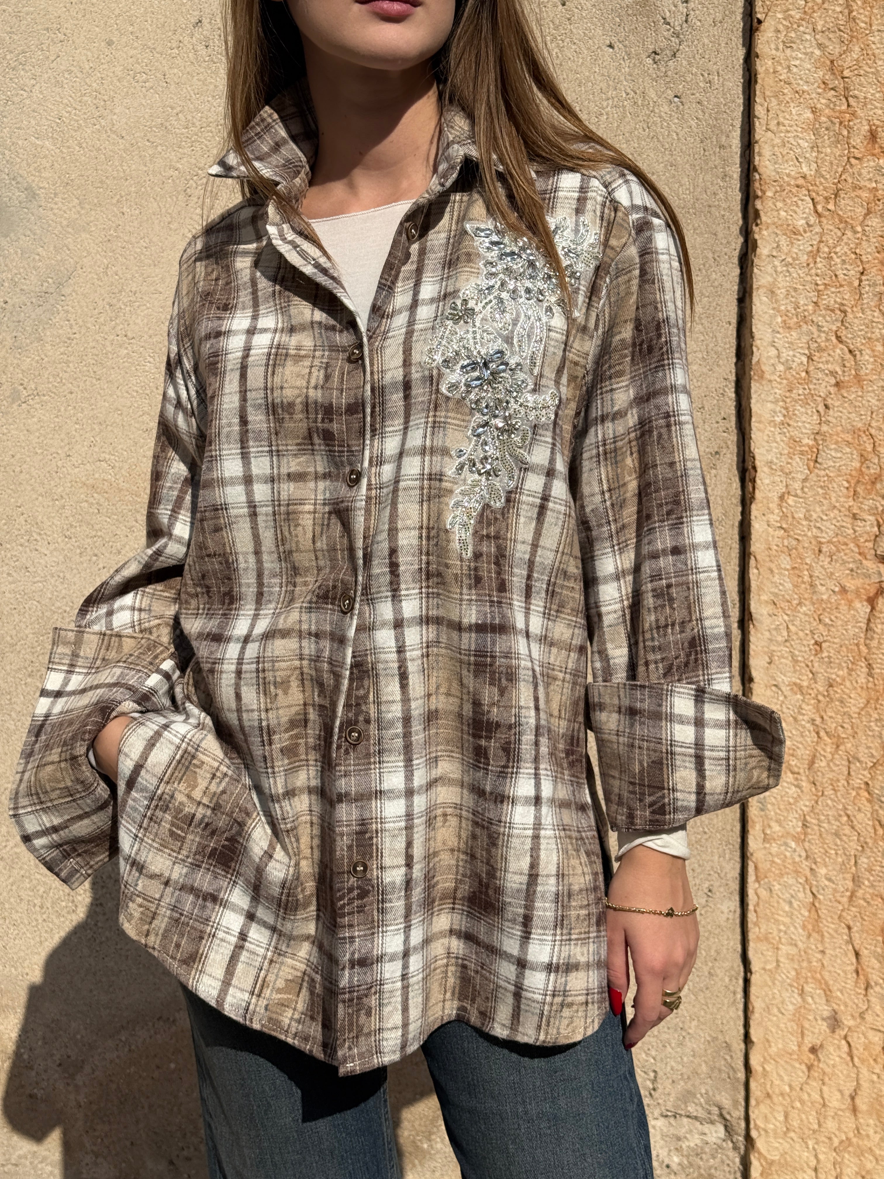 Camicia flanella con patch gioiello, fantasia quadri