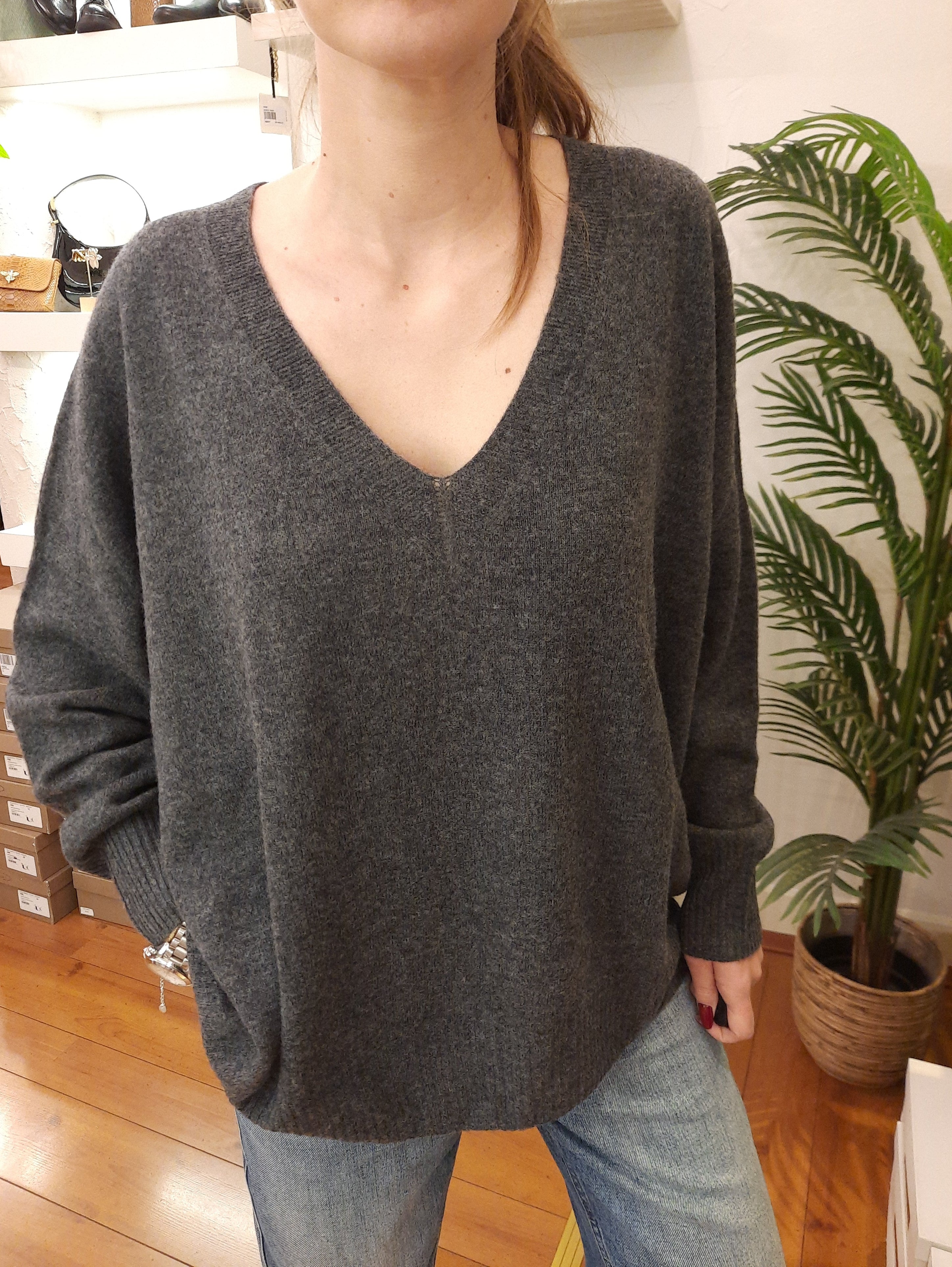 Maglia over scollo V misto cachemire col. Grigio antracite