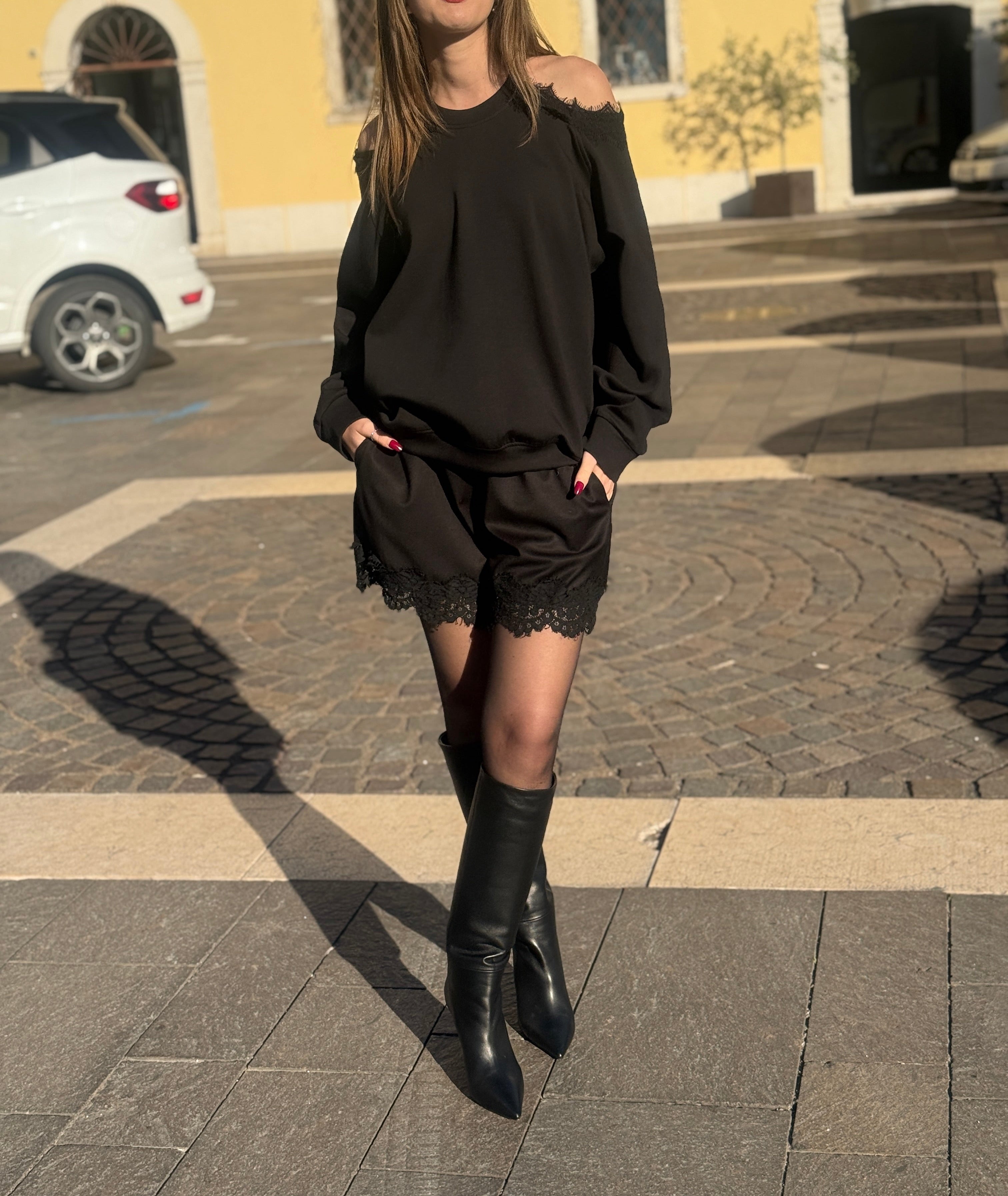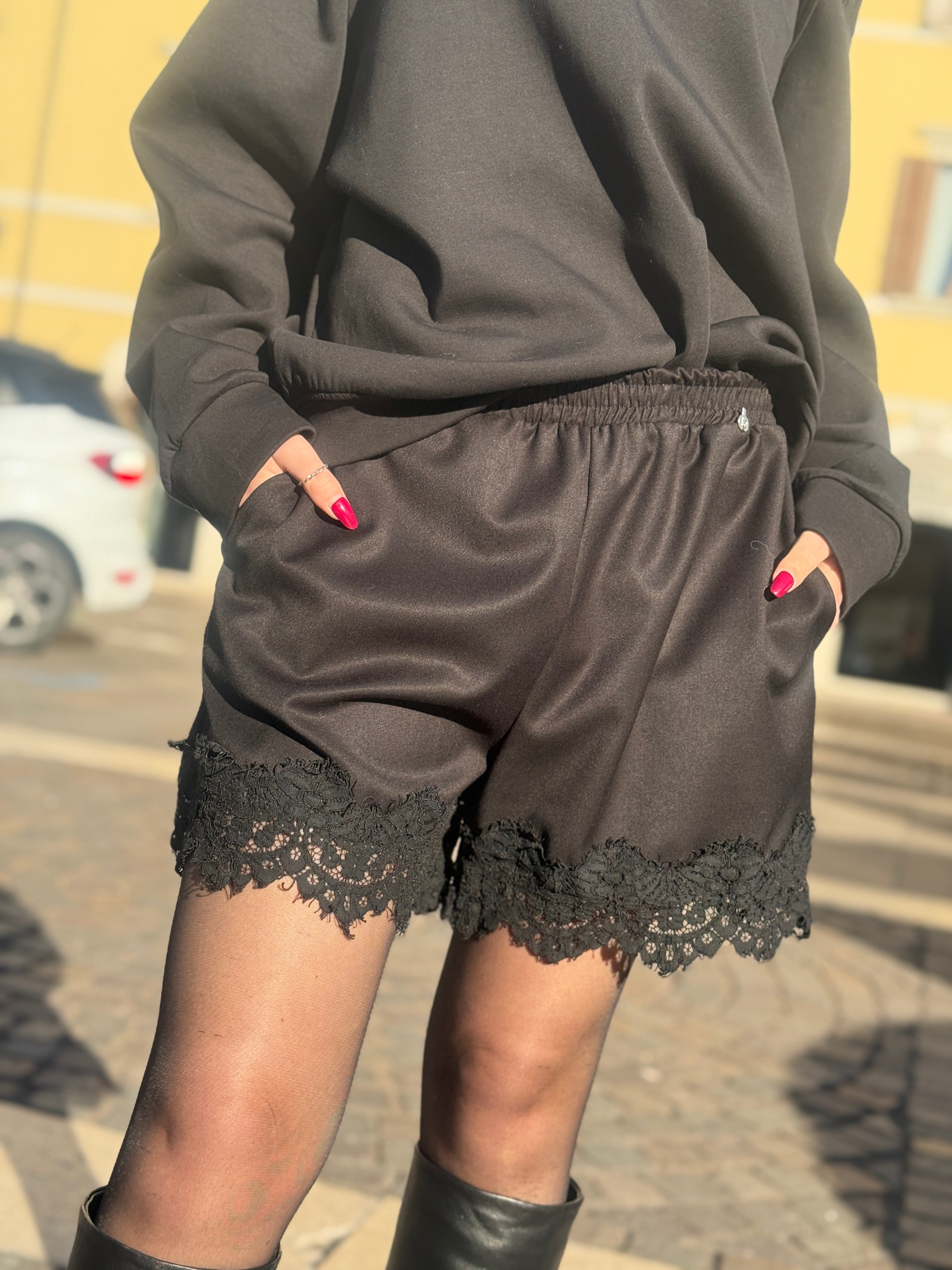 Short con pizzo sul fondo, elastico in vita e tasche laterali