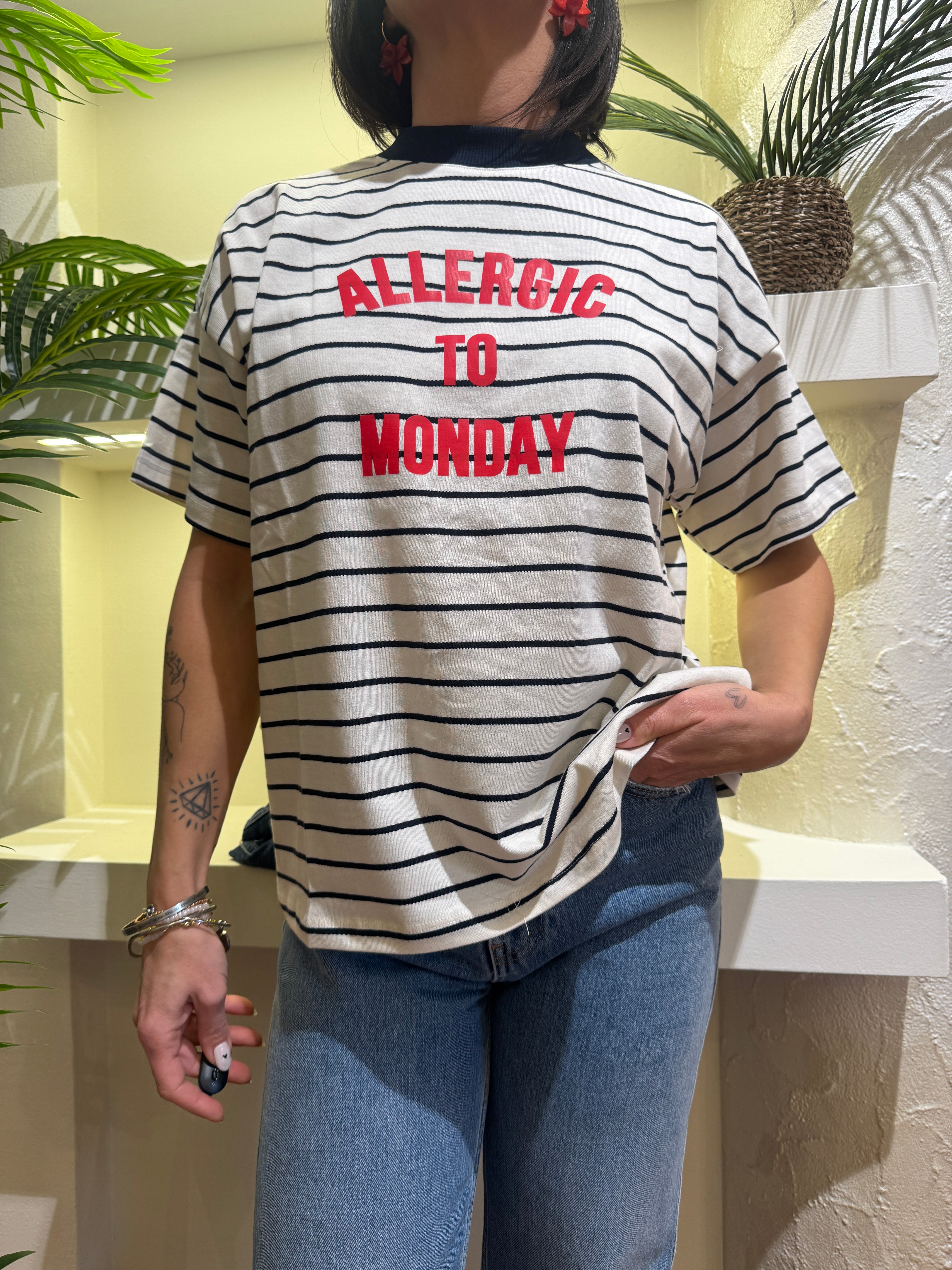 T shirt Vicolo righe blu scritta "Allergic to Monday" vestibilità over.